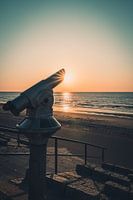 Verrekijker bij zonsondergang op het noordelijk strand van Norderney