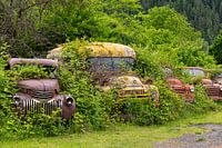 Zomaar ergens langs de kant van de weg kwam ik ze tegen, deze gezellige verzameling verroeste Amerikaanse bus en trucks. De oude gele schoolbus stond er als grootste tussen, naast een aantal oude pick-up trucks. Helemaal overgroeid met struiken en lianen stonden ze daar gewoon heel fotogeniek te staan. Ik vond het heel leuk om hier met mijn camera een tijdje door te brengen.