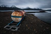 Koop de foto Verroeste opslagtank aan de kust van Longyearbyen van Martijn Smeets op canvas, aluminium dibond, (ingelijste) fotoprint, behang en ArtFrame, op maat geprint in Fine-Art kwaliteit.