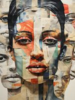 Dit indringende stuk boeit met een mozaïek van gezichten die uit een doek van krantenpapier tevoorschijn komen. Elk gefragmenteerd portret vertelt een verhaal, hun ogen een poort naar onvertelde verhalen. Het is een stuk dat de perceptie uitdaagt, waarbij men wordt aangespoord om verder te kijken dan wat aan de oppervlakte ligt.