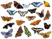 Verschillende vlindersoorten geïsoleerd op een witte achtergrond
