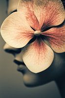 Dit werk toont een intrigerend portret waarbij een gezicht gedeeltelijk verborgen lijkt achter een bloem. De zachte, aardse tinten zorgen voor een rustige en ingetogen sfeer, terwijl de gelaagde lijnen en vormen het idee van verhulling en mysterie versterken. Het subtiele spel van schaduw en licht brengt diepte en nodigt de kijker uit om langer stil te staan en verborgen details te ontdekken. Een fascinerend werk dat een vleugje verfijning en mysterie toevoegt aan elk interieur, en een prachtige keuze voor liefhebbers van subtiele portretten met een abstracte twist.