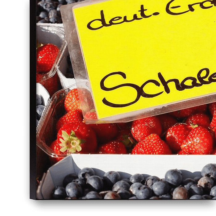 Koop de foto Verse aardbeien en bosbessen in bakjes op een marktkraam, Bremen, Duitsland van Torsten Krüger als print op canvas, aluminium dibond, (ingelijste) fotoprint, behang en ArtFrame. Voor jou op maat geprint in Fine-Art kwaliteit.