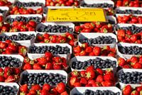 Koop de foto Verse aardbeien en bosbessen in kommetjes van Torsten Krüger op canvas, aluminium dibond, (ingelijste) fotoprint, behang en ArtFrame, op maat geprint in Fine-Art kwaliteit.