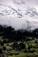 Verse sneeu in Grindelwald, Zwitserland. Ik vond dit een mooi beeld vanwege het contrast tussen het groene gras en de witte sneeuw. Dit was de eerste sneeuw van het seizoen. De berg op de achtergrond is de beroemde Eiger. Daarnaast vond ik het wolkenspel bij de bomen mooi. Een moody totaal pakketje!