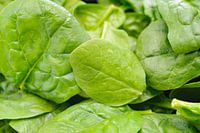 Close up foto van versie spinazie bladeren. Spinazie is een snelgroeiende, eenjarige bladgroente waarvan altijd gedacht werd dat het veel ijzer bevat.