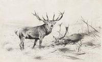 Een Hert viert dat hij heeft gewonnen van een ander mannetje, een bok met een flink gewei tijdens de bronsttijd. De man brult om vrouwtjes te lokken.