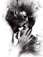 Dit fotografische kunstwerk vangt de essentie van liefde en passie in een intens moment van samensmelting. In zwart-wit tonen zie je twee geliefden die elkaar omarmen, omhuld door vloeiende rookstructuren en subtiele watertexturen. Het werk ademt emotie en gelaagdheid en roept een gevoel op van kracht, overgave en tijdloos…