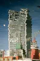 Het water van de Leuvehaven in Rotterdam veroorzaakt prachtige wilde vervormingen op deze foto, maar toch blijven de gespiegelde objecten herkenbaar.