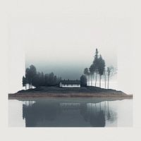 Verstild landschap #02 - Een print van een huis op een klein eiland omgeven door hoge naaldbomen. Deze verlaten plek op de wereld ademt rust en eenvoud. Een perfecte locatie om je terug te trekken uit de hectiek van alledag.