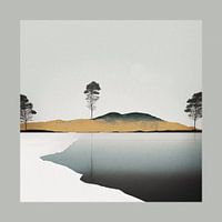 Verstild landschap #05 - Een print van een klein eiland met drie naaldbomen. Deze verlaten plek op de wereld ademt rust en eenvoud. Een perfecte locatie om je terug te trekken uit de hectiek van alledag.