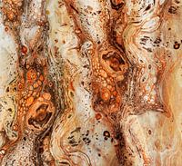Abstract mixed media schilderij in koper,goud en bruin tinten. Fantasie flow in natuurtinten