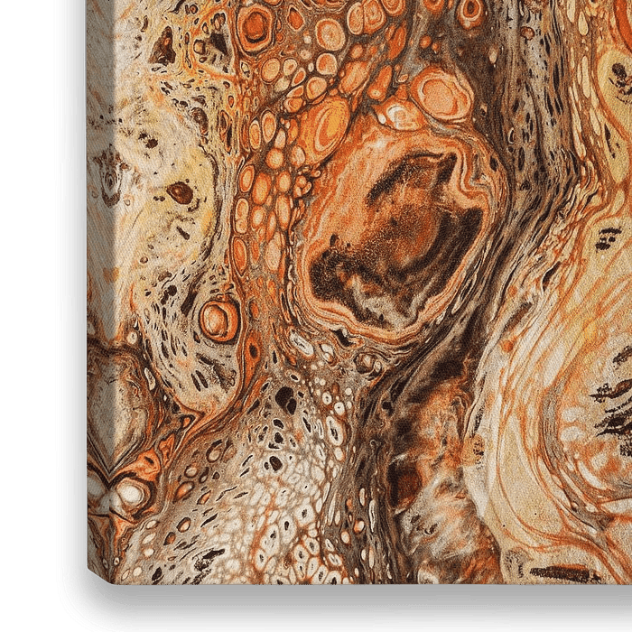 Abstract mixed media schilderij in koper,goud en bruin tinten. Fantasie flow in natuurtinten