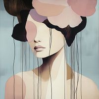 De manier waarop haar gezicht gedeeltelijk verborgen wordt, versterkt het idee dat niet alles zichtbaar is; misschien zijn haar gedachten gefragmenteerd, misschien zijn haar dromen niet volledig te bevatten. Dit gevoel van vervreemding en introspectie roept vragen op over identiteit, emoties en de manier waarop we onze innerlijke wereld ervaren.