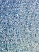 Uitzicht op de glinsterende Atlantische Oceaan in verschillende tinten blauw.