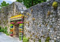 Over ‘Verticale tuin met kleurrijke bloempotten op de stadsmuur van’ van ManfredFotos