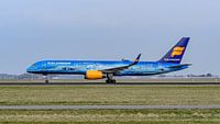 Vertrek Icelandair Boeing 757 met 80 years of Aviation livery.