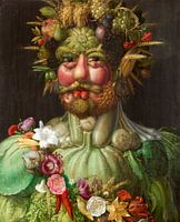 Geschilderd door Giuseppe Arcimboldo. Giuseppe Arcimboldo (Milaan, ca. 1527 - 11 juli 1593) is een kunstschilder uit de Italiaanse renaissance die vooral bekend werd met portretten die samengesteld waren uit allerlei voorwerpen zoals groenten, fruit, bloemen, boeken en vissen.