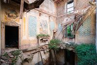 Dit is een foto van een prachtig Italiaans huis dat helaas in hevig verval is geraakt. Het dak en de vloer is ingestort. Op de muur zijn nog prachtige decoraties zichtbaar die ik overigens in de rest van het gebouw ook ben tegengekomen. Het zal naar verwachting niet lang duren voor de rest van het gebouw ook instort.