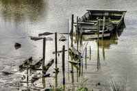 Pyramide is een buurtschap tussen IJzendijke en Philippine. Aan de Plattedijk (een karrrespoor) ligt een klein kreekje, en daar lag dit stilleven. Zowel bootje als steiger hadden hun beste tijd gehad ...