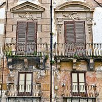 De foto van deze vervallen, mysterieuze huisgevel met de typische Siciliaanse balkonhekken is genomen tijdens mijn paasreis in de vroege namiddag van 21 april 2022 in de Siciliaanse hoofdstad Palermo.