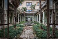 Vervallen tuin in een verlaten hotel