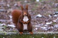 Verwachtingsvol kijkend eekhoorntje stond even mooi te poseren.