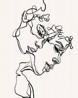 Een minimalistisch, doorlopend lijnportret dat de delicate balans tussen abstractie en vorm vastlegt. Dit werk roept emotie op door middel van vloeiende, onderling verbonden lijnen en creëert een gevoel van introspectie en etherische schoonheid.