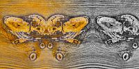 De foto is een close-up van verweerd hout van een oude schuur in Fins Lapland. De foto heeft een panorama compositie gekregen door één foto van het hout een aantal malen te spiegelen. Het is een soort abstract kunstwerk uit de natuur dat de nerven en een kwast (noest) in het hout laat zien. De foto werd gedeeltelijk omgewerkt naar zwartwit.