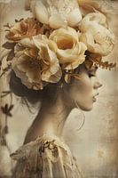 Verweerd portret met een dromerige uitstraling. Aardetinten. Kies zelf het formaat en materiaal bij dit werk en maak er een echte blikvanger van voor jouw interieur.