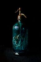 Oude verweerde blauwe spuitwaterfles, gefotografeerd in mijn studio. Deze fles ooit op een rommelmarkten Frankrijk gekocht. Ik vind de kleuren erg mooi.