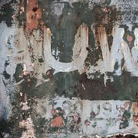Oude ijzeren deur in pasteltinten. Roest komt door de afgebladderde verf. Het is een oude treindeur.