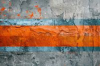 Geometrische kunst: structuur in kleur. Deze abstracte compositie boeit met zijn horizontale strepen in sterk oranje en koele blauwtinten, die doen denken aan verweerde oppervlakken. De ruwe texturen en versleten oppervlakken vertellen verhalen van tijd en verandering. Dit werk brengt een opvallende, industriële esthetiek in elke kamer…