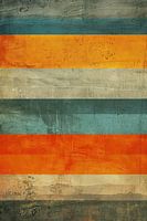 Geometrische kunst: structuur in kleur. Deze abstracte compositie boeit met zijn horizontale strepen in sterk oranje en koele blauwtinten, die doen denken aan verweerde oppervlakken. De ruwe texturen en versleten oppervlakken vertellen verhalen van tijd en verandering. Dit werk brengt een opvallende, industriële esthetiek in elke kamer en is ideaal voor kunstliefhebbers die op zoek zijn naar een combinatie van rauwe schoonheid en kleurrijke harmonie.