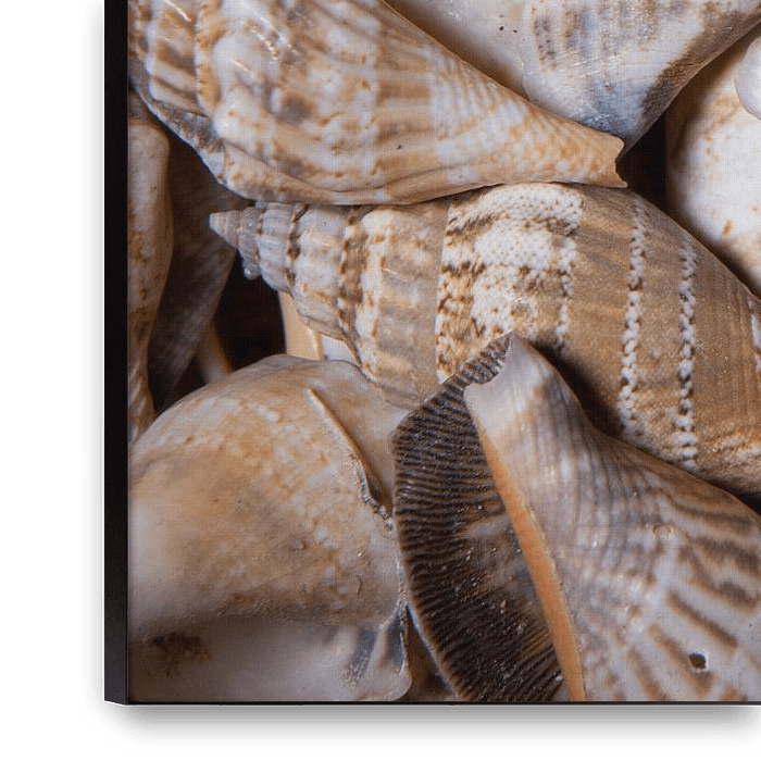 Koop de foto Verzameling schelpen: bruin, beige, grijs en zandkleurig van Marjolijn van den Berg op canvas, aluminium dibond, (ingelijste) fotoprint, behang en ArtFrame, op maat geprint in Fine-Art kwaliteit.