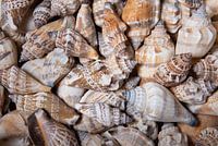 Verzameling schelpen: bruin, beige, grijs en zandkleurig van Marjolijn van den Berg
