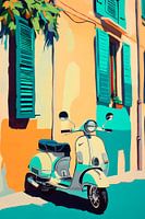 Koop dit Popart kunstwerk Vespa in de stad van Poster Art Shop op canvas, aluminium dibond, (ingelijste) fotoprint, behang en ArtFrame, op maat geprint in Fine-Art kwaliteit.