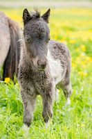 Het is lente en dit Veulentje staat heerijk tussen de boterbloemen.