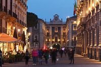 Via Etnea, Porta Uzeda, Schemering, Oude Stad, Catania, Sicilië, Italië