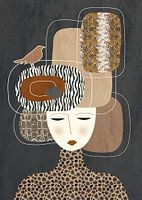 Illustratie portret, bewerkt met abstracte vormen en dieren patronen