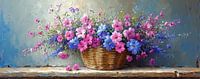 Vibrancy in Woven Harmony - Kleurrijk bloemstilleven in mand