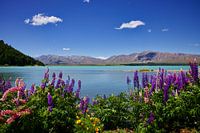 Langs de oever van Lake Tekapo bloeien in het voorjaar duizenden lupines die het landschap transformeren tot een explosie van kleur.