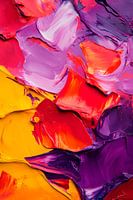 Felle kleurexplosies in levendig paars, stralend rood en zonnig geel creëren een boeiend kleurenspel. De dynamische penseelstreken geven de kamer energie en levensvreugde. Dit kunstwerk is ideaal voor de woonkamer, waar creativiteit en inspiratie kunnen floreren, en verandert elk uitzicht in een kleurrijk genot.