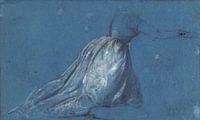 Spookachtig beeld van een zwevende vrouw met jurk in het blauw. Het gemis van een hoofd en voeten maakt dit onbedoeld tot een eng beeld, alsof een spook door de nacht zweeft.