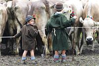 Twee herdertjes bij de Viehscheid, Bad Hindelang, Oberallgäu, Beieren, Duitsland, Europa