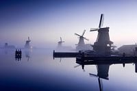 Vier Molens in Blauw aan de Zaanse Schans in Noord Holland.