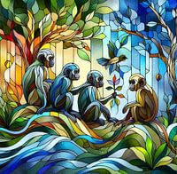 Vier aapjes in oerwoud van Yvonne van Huizen
