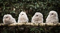 Vier takkelingen. Vier jonge bosuilen op een berkentak. Deze jonge uiltjes worden geringd voordat ze uit gaan vliegen. Een mooi moment om ze snel even vast te leggen. De jongen blijven ca. 31 dagen in het nest, maar gaan dan al vroeg op ontdekking uit in de takken rondom het nest. Daarna blijven ze meestal ongeveer 3 maanden in het…
