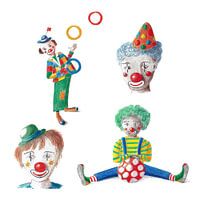 Koop de illustratie Vier vrolijke clowns van Ivonne Wierink als print op canvas, aluminium dibond, (ingelijste) fotoprint, behang en ArtFrame. Voor jou op maat geprint in Fine-Art kwaliteit.