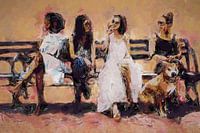 Waarom kijkt de linkervrouw weg? Zit de derde vrouw nou in een trouwjurk?